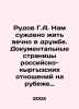Rudov G.A. We are destined to live forever in friendship. Documentary pages of Russian-Kyrgyz relations at the turn of the century. In Russian (ask us if in doubt)/Rudov G.A. Nam suzhdeno zhit vechno v druzhbe. Dokumentalnye stranitsy rossiysko-kyrgyzskikh otnosheniy na rubezhe vekov.Revised by Academician V. Ploskikh. Moscow. - Bishkek. MGIMO. KRS 2002. 352 p. We have thousands of titles and often several copies of each title may be available. Please feel free to contact us for a detailed description of the copies available. SKUalb17497b2bc00bed73