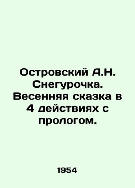 A.N. Snegurochka Ostrovsky. Spring fairy tale in 4 acts with prologue. In Russian /Ostrovskiy A.N. Snegurochka. Vesennyaya skazka v 4 deystviyakh s prologom. Illustrations by V.M. Vasnetsov. M. GIHL 1954. 141 p. We have thousands of titles and often several copies of each title may be available. Please feel free to contact us for a detailed description of the copies available. SKUalbd7735089dc053857.