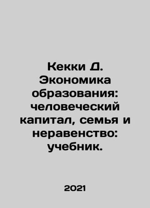 Kecky D. The Economics of Education: Human Capital, Family, and Inequality: A Textbook. In Russian /Kekki D. Ekonomika obrazovaniya: chelovecheskiy kapital, semya i neravenstvo: uchebnik. M. ID Case # RANEPA 2021. 288 p.We have thousands of titles and often several copies of each title may be available. Please feel free to contact us for a detailed description of the copies available.SKUalb17a96cf6a50fdd37.