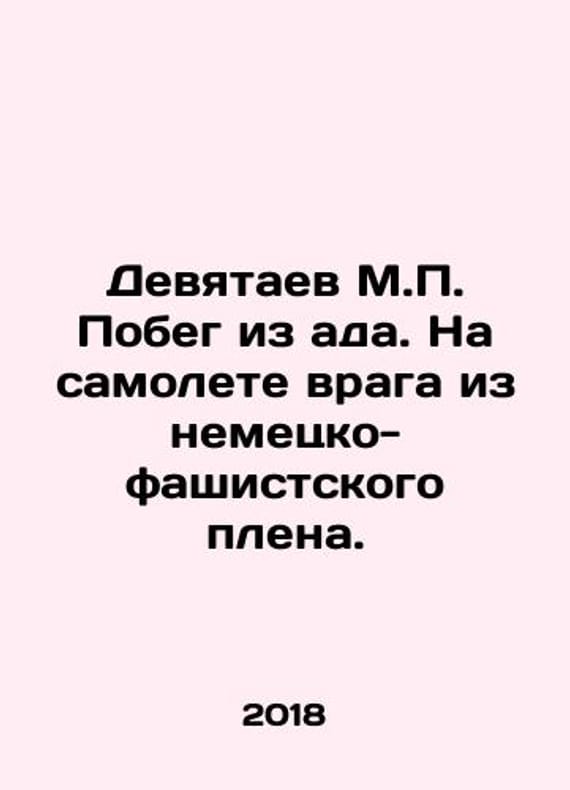 Ninetayev M.P. Escape from Hell. On an enemy plane from Nazi captivity. In Russian /Devyataev M.P. Pobeg iz ada. Na samolete vraga iz nemetsko-fashistskogo plena. Moscow OSLN. 2018. 232 p.We have thousands of titles and often several copies of each title may be available. Please feel free to contact us for a detailed description of the copies available.SKUalb17c3519b91ecd376.