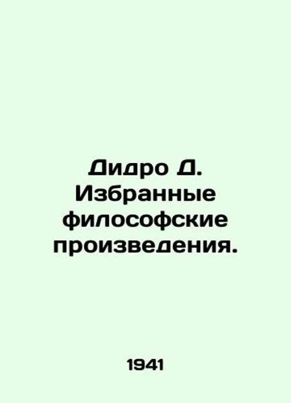 Didero D. Selected philosophical works. In Russian /Didro D. Izbrannye filosofskie proizvedeniya. M Gopolizdat 1941. We have thousands of titles and often several copies of each title may be available. Please feel free to contact us for a detailed description of the copies available. SKUalb17c7e76b2b28f923.