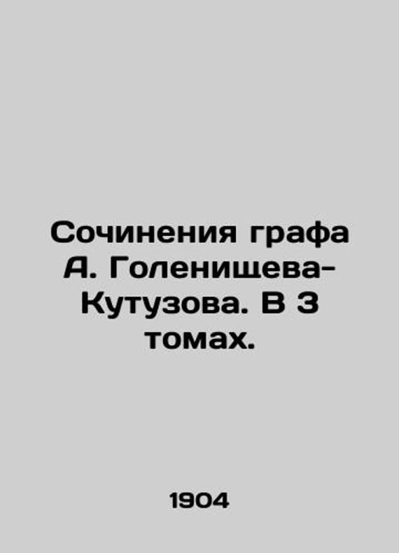 Works by Count A. Golenishchev-Kutuzov. In 3 volumes. In Russian /Sochineniya grafa A. Golenishcheva-Kutuzova. V 3 tomakh. S-Petersburg. T. R. Golika and A. Wilborg. 1904-1905. 296, VII p., 1 l. portrait. We have thousands of titles and often several copies of each title may be available. Please feel free to contact us for a detailed description of the copies available. SKUalb18350c95fb44f9ef.