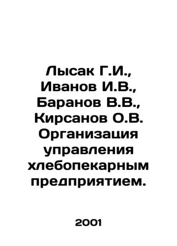 Lysak G.I., Ivanov I.V., Baranov V.V., Kirsanov O.V. Organization of management of the bakery enterprise. In Russian /Lysak G.I., Ivanov I.V., Baranov V.V., Kirsanov O.V. Organizatsiya upravleniya khlebopekarnym predpriyatiem. M. Alpina Publisher 2001.We have thousands of titles and often several copies of each title may be available. Please feel free to contact us for a detailed description of the copies available. SKUalb18dbbd34f2403482.