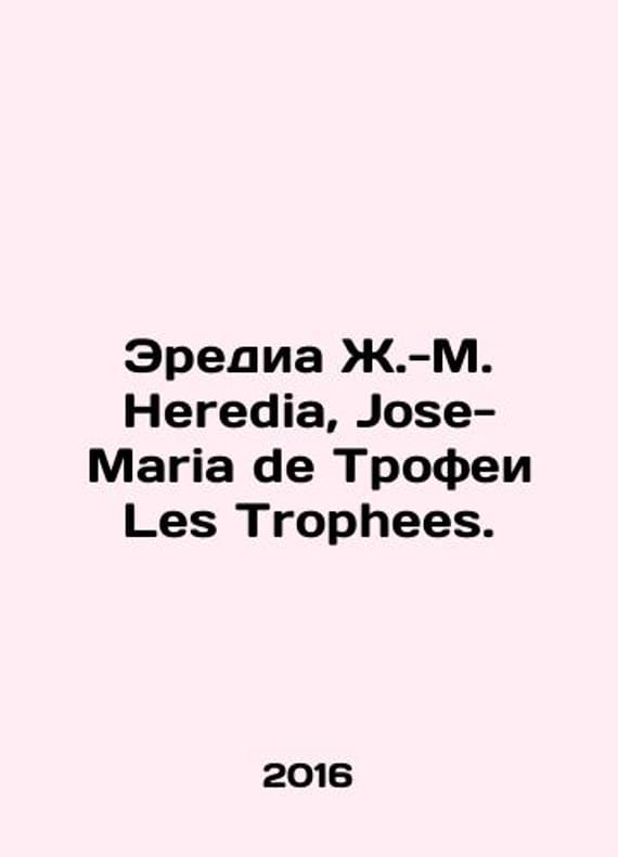 Heredia J.-M. Heredia, Jose-Maria de Trophees. In Russian /Eredia Zh.-M. Heredia, Jose-Maria de Trofei Les Trophees. Sonnets translated by Mikhail Travchetov: in French and Russian by Peter M. I. Travchetov: foreword and commentary by B. N. Romanov: edited by M. S. Gutnik, Yu. G. Friedstein, A. V. Chernov: design by T. N. Kosterina Moscow Rudomino Book Center 2016. We have thousands of titles and often several copies of each title may be available. Please feel free to contact us for a detailed description of the copies available. SKUalb1954cfdc60d32109.