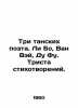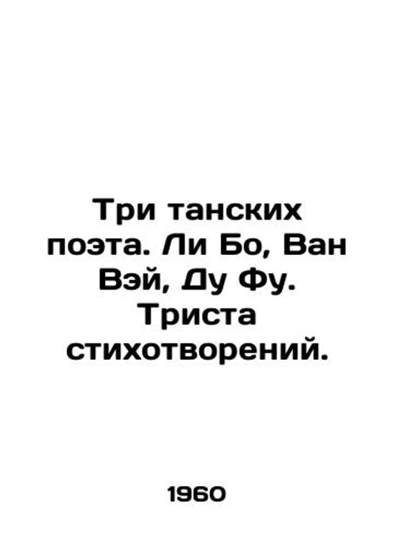 Three Dance Poets. Li Bo, Wang Wei, Du Fu. Three hundred poems. In Russian /Tri tanskikh poeta. Li Bo, Van Vey, Du Fu. Trista stikhotvoreniy. Written by A.I. Gitovicha. and Note by G.O. Monzeler. Introductory article by N.I. Konrad. Moscow: Publishing House of Eastern Literature. 1960. 494 p.We have thousands of titles and often several copies of each title may be available. Please feel free to contact us for a detailed description of the copies available.SKUalb19606ef9e34a0d27.