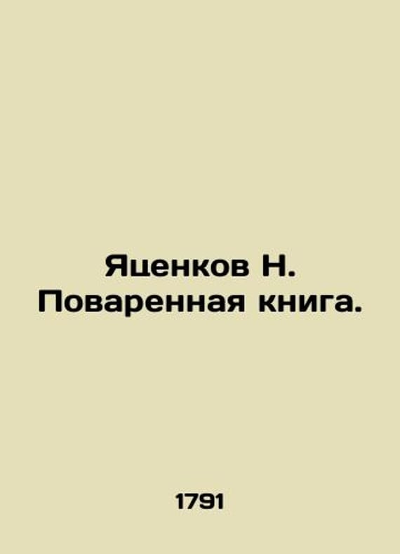 Yatsenkov N. The Cookbook. In Russian /Yatsenkov N. Povarennaya kniga. The newest and complete cookbook in 2 hours Moscow 1791, half of the 18th century. We have thousands of titles and often several copies of each title may be available. Please feel free to contact us for a detailed description of the copies available. SKUalb19a1458d5837e646.