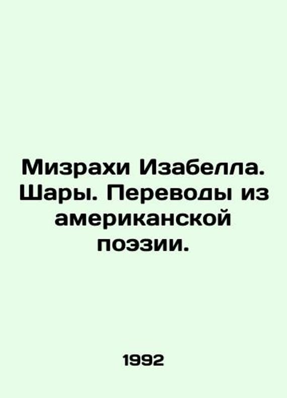Mizrahi Isabella. Balls. Translations from American Poetry. In Russian /Mizrakhi Izabella. Shary. Perevody iz amerikanskoy poezii. M. Contract TMT 1992. 88 p.We have thousands of titles and often several copies of each title may be available. Please feel free to contact us for a detailed description of the copies available.SKUalb19a42279423f4f35.