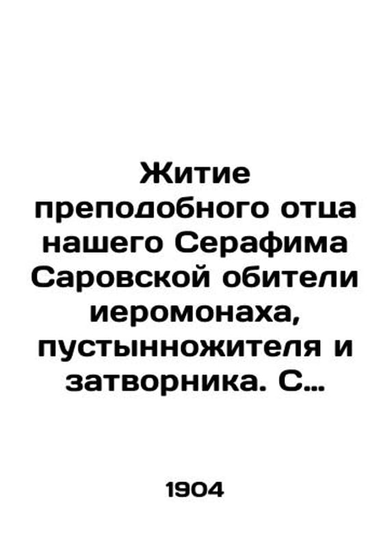 The life of our Venerable Father Seraphim of Sarov, hieromonk, desert dweller, and recluse. In Russian /Zhitie prepodobnogo ottsa nashego Serafima Sarovskogo, ieromonakha, pustynnozhitelya i zatvornika. St. Petersburg Society of Memory of Abbot Taisia. 384 We have thousands of titles and often several copies of each title may be available. Please feel free to contact us for a detailed description of the copies available. SKUalbd531bb8642b4a231.