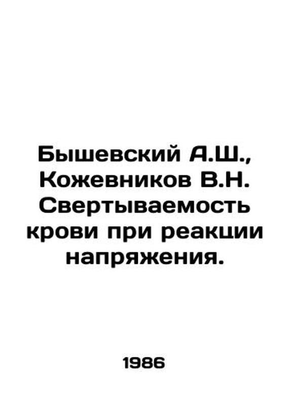 Byshevsky A.Sh., Kozhevnikov V.N. Blood clotting in stress reaction. In Russian /Byshevskiy A.Sh., Kozhevnikov V.N. Svertyvaemost krovi pri reaktsii napryazheniya. Sverdlovsk. Middle Ural Book Publishing House. 1986. We have thousands of titles and often several copies of each title may be available. Please feel free to contact us for a detailed description of the copies available. SKUalb1a150223bb30509a.