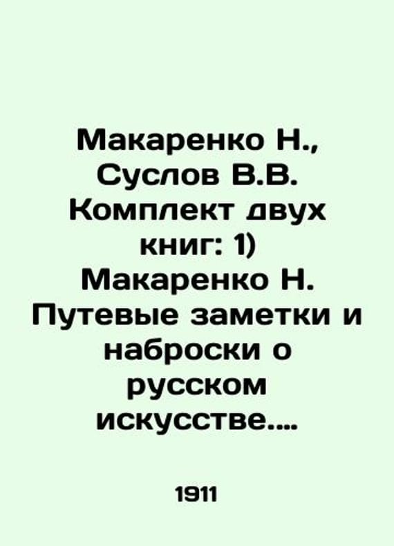 Makarenko N. Suslov V.V. Set of two books: 1) Makarenko N. Travel notes and sketches about Russian art. Vol. 1: Belozersky Krai In Russian (ask us if in doubt)/Makarenko N. Suslov V.V. Komplekt dvukh knig: 1) Makarenko N. Putevye zametki i nabroski o russkom iskusstve. Vyp.1: Belozerskiy kray. Izd. A.A. Zhukova 1914 g. 2) Suslov V.V. Russkoe zodchestvo po predan'yam narodnoy stariny. 1911 g. Short description: In Russian (ask us if in doubt).St. Petersburg: T. R. Golika and A. Wilborg 1914 1911 59 p. We have thousands of titles and often several copies of each title may be available. Please feel free to contact us for a detailed description of the copies available. SKUalb1a3e54d70ead69fd