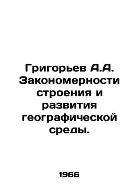 Grigoryev A.A. The patterns of the structure and development of the geographic environment. In Russian /Grigorev A.A. Zakonomernosti stroeniya i razvitiya geograficheskoy sredy. Selected theoretical works. M. Thought 1966. 382s.We have thousands of titles and often several copies of each title may be available. Please feel free to contact us for a detailed description of the copies available.SKUalb1a4d52162c7c966e.