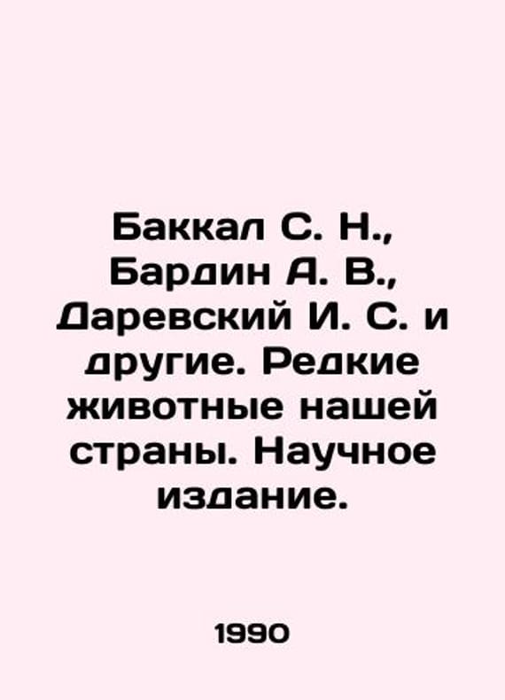 Bakkal S. N. Bardin A. V. Darevsky I. S. and others. Rare animals of our country. Scientific Edition. In Russian (ask us if in doubt)./Bakkal S. N. Bardin A. V. Darevskiy I. S. i drugie. Redkie zhivotnye nashey strany. Nauchnoe izdanie. Editor-in-Chief Academician V. E. Sokolov Corresponding Member O. A. Scarlato. The drawings were made by a team of artists as well as V. M. Smyrin and Yu. M. Smyrin and E. A. Pavlova. Artist L. A. Yatsenko. Leningrad. Science. 1990. 311 p. SKUalb1a7a10db00989e8f.