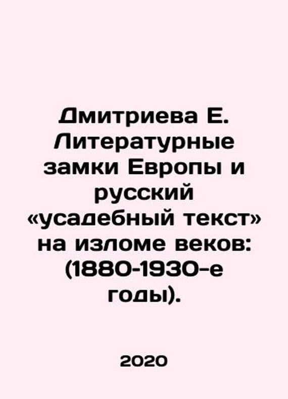 Dmitrieva E. Literary Castles of Europe and Russian Manor Text at the Turn of the Ages: (1880-1930s). In Russian /Dmitrieva E. Literaturnye zamki Evropy i russkiy «usadebnyy tekst» na izlome vekov: (1880 1930-e gody). Russian Manor in a Global Context, Volume 5, Moscow: IMLI RAS, 2020.0786 p.We have thousands of titles and often several copies of each title may be available. Please feel free to contact us for a detailed description of the copies available.SKUalb1aa2faadc3fa6e89.