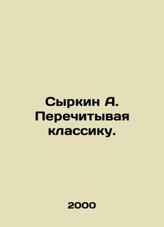 Syrkin A. Re-reading classics. In Russian /Syrkin A. Perechityvaya klassiku. Syrkin A. Rereading the Classics. 2000. Jerusalem. We have thousands of titles and often several copies of each title may be available. Please feel free to contact us for a detailed description of the copies available. SKUalb1aa76ae6962309ae.