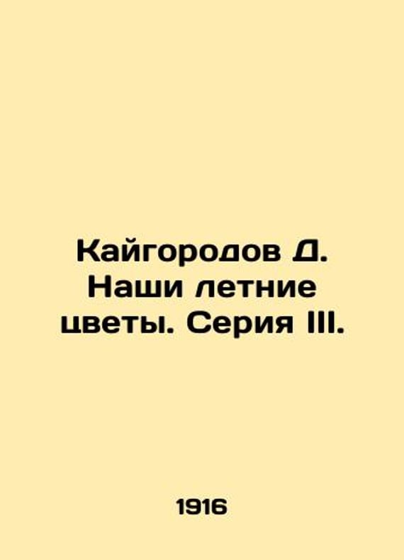 Kaigorod D. Our Summer Flowers. Series III. In Russian /Kaygorodov D. Nashi letnie tsvety. Seriya III. Popular Essays. With 16 colorful watercolor tables from T. D. Maresevas life. Petrograd. Edition by A.S. Suvorin-Novoye vremya. 1916. 56 p.We have thousands of titles and often several copies of each title may be available. Please feel free to contact us for a detailed description of the copies available.SKUalb1ad4b4429bdcc77c.