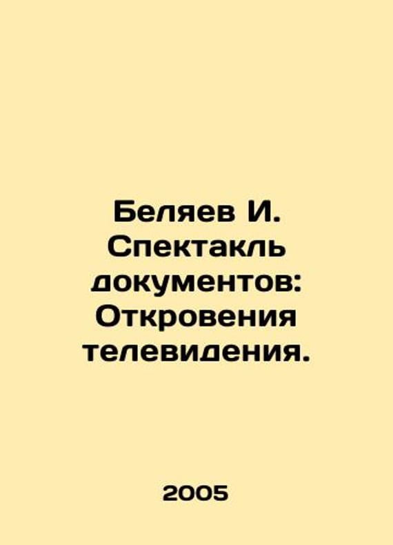 I. Belyaevs Performance of Documents: TV Revelations. In Russian (ask us if in doubt)/Belyaev I. Spektakl dokumentov: Otkroveniya televideniya.. M. Geleos. 2005. 352s. SKUalb1ad9fa3afeb6dd7f.