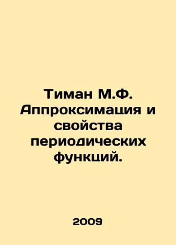 Timan M.F. Approximation and properties of periodic functions. In Russian /Timan M.F. Approksimatsiya i svoystva periodicheskikh funktsiy. Kyiv Naukova Dumka 2009. 376s.We have thousands of titles and often several copies of each title may be available. Please feel free to contact us for a detailed description of the copies available.SKUalb1af59f1cb5f1bc0c.