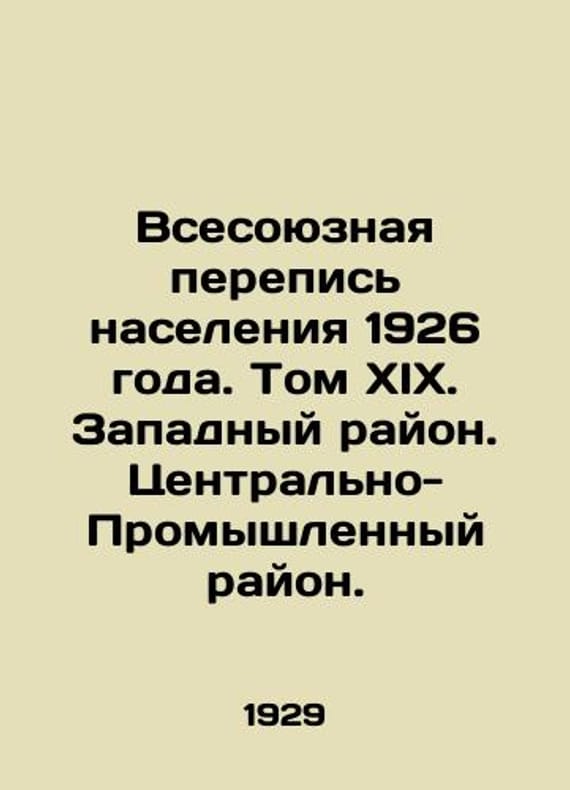 All-Union Population Census of 1926. Volume XIX. Western District. Central Industrial District. In Russian /Vsesoyuznaya perepis naseleniya 1926 goda. Tom XIX. Zapadnyy rayon. Tsentralno-Promyshlennyy rayon. Department II. Occupation. Moscow. CSU of the USSR 1929. VI, 660 p. We have thousands of titles and often several copies of each title may be available. Please feel free to contact us for a detailed description of the copies available. SKUalb1b02423f5066e367.