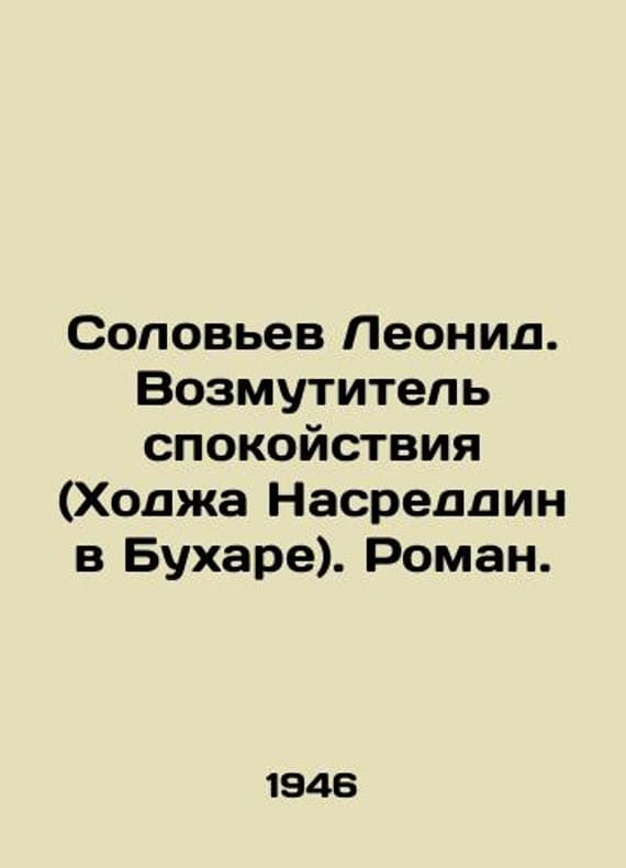 Leonid Solovyov: The Troublemaker (Khoja Nasreddin in Bukhara). Roman. In Russian /Solovev Leonid. Vozmutitel spokoystviya (Khodzha Nasreddin v Bukhare). Roman. Artist A. Radishchev. Moscow. OGIZ. Goslitizdat. State Publishing House of Art Literature. 1946. 212 p. We have thousands of titles and often several copies of each title may be available. Please feel free to contact us for a detailed description of the copies available. SKUalb1baff0cd0739240e.