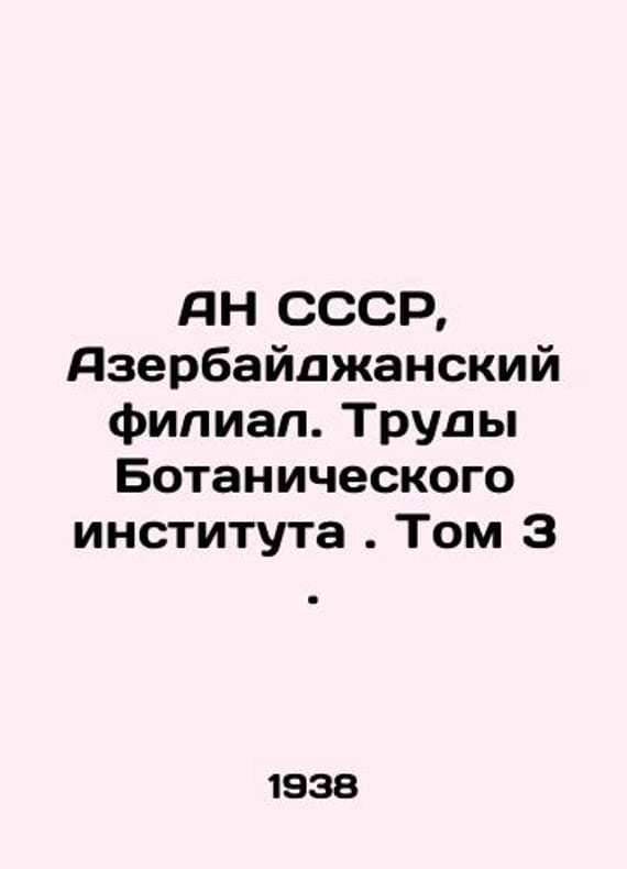 Academy of Sciences of the USSR, Azerbaijan Branch. Proceedings of the Botanical Institute. Volume 3. In Russian /AN SSSR, Azerbaydzhanskiy filial. Trudy Botanicheskogo instituta. Tom 3. Ed. A. A. Grossheim. Academy of Sciences of the USSR, Azerbaijan Branch of Baku: Azerbaijan Branch of the Academy of Sciences of the USSR, 1938. 340s.We have thousands of titles and often several copies of each title may be available. Please feel free to contact us for a detailed description of the copies available.SKUalb1be5d4cf3eef1e51.