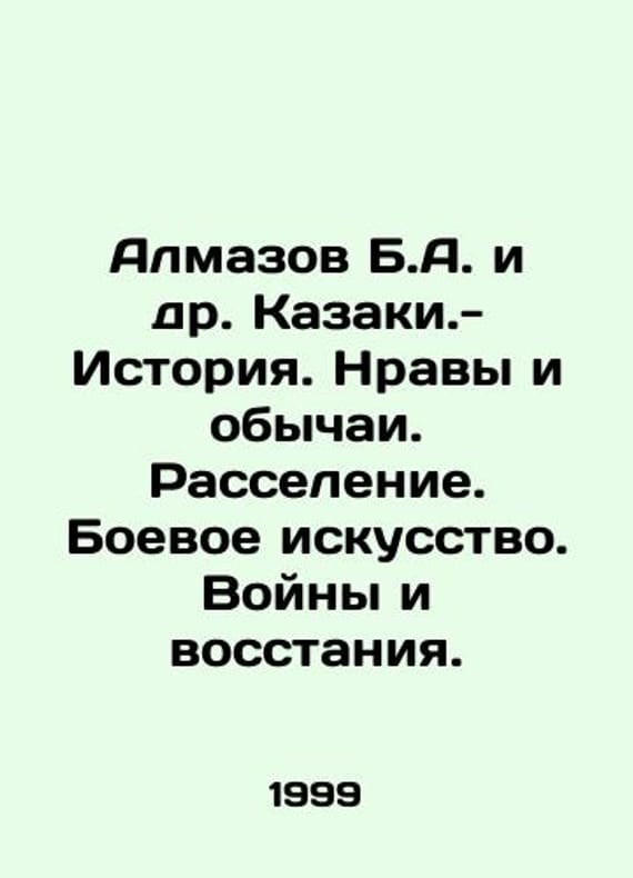 Almazov B.A. et al. Cossacks. - History. Morals and customs. Settlement. Martial arts. Wars and insurrections. In Russian /Almazov B.A. i dr. Kazaki.- Istoriya. Nravy i obychai. Rasselenie. Boevoe iskusstvo. Voyny i vosstaniya. Edited by B.A. Almazov. Series: Illustrated History of the Fatherland. Artists: M. Gavrilov, Kornakov, E. Baskakova. St. Petersburg. The Golden Age. Diamond. 1999. We have thousands of titles and often several copies of each title may be available. Please feel free to contact us for a detailed description of the copies available. SKUalb1c00331f2e3ac2ed.