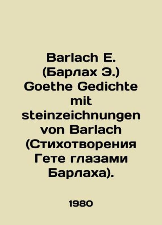 Barlach E. Goethe Gedichte mit steinzeichnungen von Barlach. In Russian /Barlach E. (Barlakh E.) Goethe Gedichte mit steinzeichnungen von Barlach (Stikhotvoreniya Gete glazami Barlakha). Leipzig Edition 1980. 76 c. We have thousands of titles and often several copies of each title may be available. Please feel free to contact us for a detailed description of the copies available. SKUalb1d164bec03c876d6.