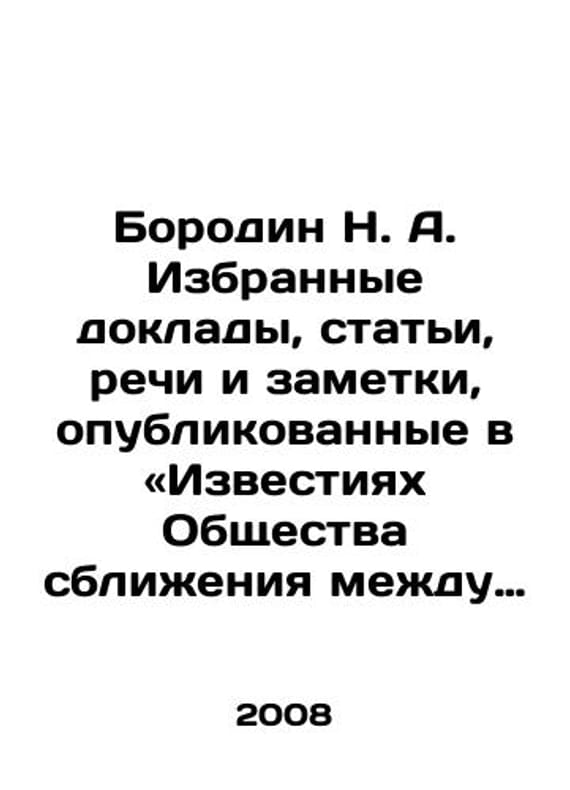 Borodin N. A. Selected reports, articles, speeches and notes published in the Proceedings of the Society for Rapprochement between Russia and America (1915-1918). In Russian /Borodin N. A. Izbrannye doklady, stati, rechi i zametki, opublikovannye v «Izvestiyakh Obshchestva sblizheniya mezhdu Rossiey i Amerikoy» (1915-1918 gg.). Avt. E. B. Belodubrovsky. Uralsk-S.Pb.2008-2009. 96 p.We have thousands of titles and often several copies of each title may be available. Please feel free to contact us for a detailed description of the copies available.SKUalb1d340158668014d3.
