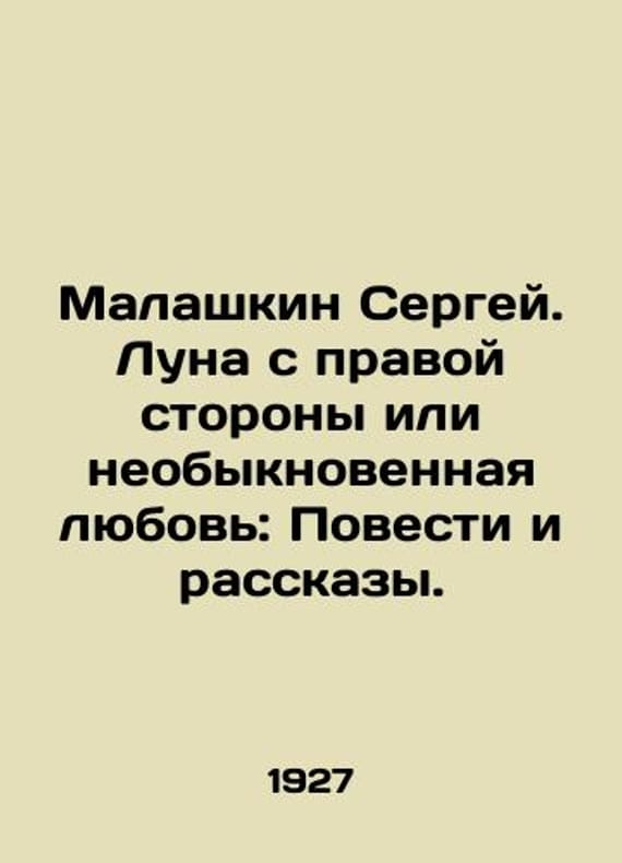 Sergei Malashkin. The Moon on the Right Side or Extraordinary Love: Stories and Stories. In Russian /Malashkin Sergey. Luna s pravoy storony ili neobyknovennaya lyubov: Povesti i rasskazy. Moscow edition of the Young Guard. Circulation 5000 copies 1927. 236s. We have thousands of titles and often several copies of each title may be available. Please feel free to contact us for a detailed description of the copies available. SKUalb1d5308cd77712916.