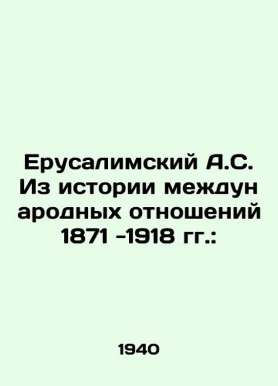 Jerusalem A.S. From the History of International Relations 1871-1918: In Russian /ErusalimskiyA.S. Iz istoriimezhdunarodnykhotnosheniy 1871 -1918 gg.: Compilation of Articles by V.I. Lenin Military and Political Academy Moscow 1940. We have thousands of titles and often several copies of each title may be available. Please feel free to contact us for a detailed description of the copies available. SKUalb1d576c8d6f2e5122.