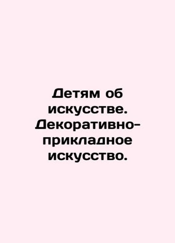 Children about art. Decorative and applied art. In Russian /Detyam ob iskusstve. Dekorativno-prikladnoe iskusstvo. Series: To Children About Art. M. Art-XXI Century.We have thousands of titles and often several copies of each title may be available. Please feel free to contact us for a detailed description of the copies available.SKUalb1d75f47b646d29c0.