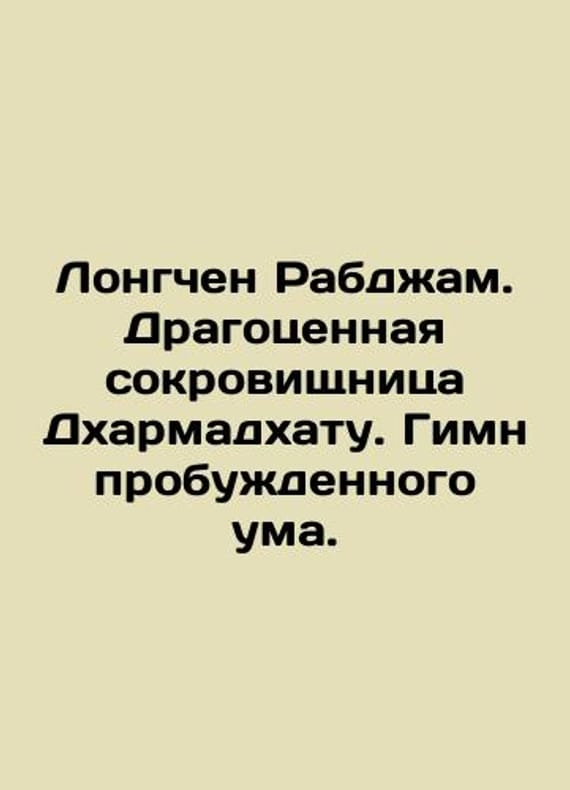 Longchen Rabjam. Precious Treasure of Dharmadhatu. Hymn of the Awakened Mind. In Russian /Longchen Rabdzham. Dragotsennaya sokrovishchnitsa Dkharmadkhatu. Gimn probuzhdennogo uma. M. Ganga 2017 448s. We have thousands of titles and often several copies of each title may be available. Please feel free to contact us for a detailed description of the copies available. SKUalb4737cdb63e2c341f.