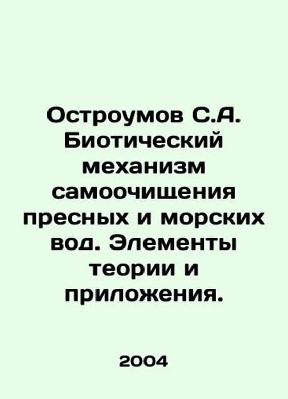 Ostromov S.A. Biotic self-purification mechanism of freshwater and seawater. Elements of theory and application. In Russian /Ostroumov S.A. Bioticheskiy mekhanizm samoochishcheniya presnykh i morskikh vod. Elementy teorii i prilozheniya. Series: Ecological Studies, Hazards, Solutions, T. 9. Moscow: Max Press, 2004, 96 p.We have thousands of titles and often several copies of each title may be available. Please feel free to contact us for a detailed description of the copies available.SKUalb1dc8347c4ebcca27.