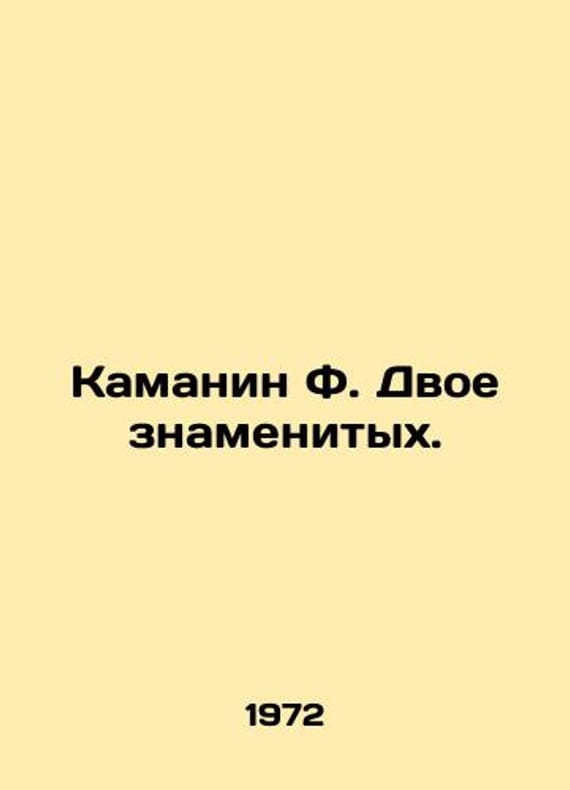 Kamanin F. The Two Famous. In Russian /Kamanin F. Dvoe znamenitykh. The story of M Mosk.working year 1972.We have thousands of titles and often several copies of each title may be available. Please feel free to contact us for a detailed description of the copies available. SKUalb1ddac4524eeaea34.