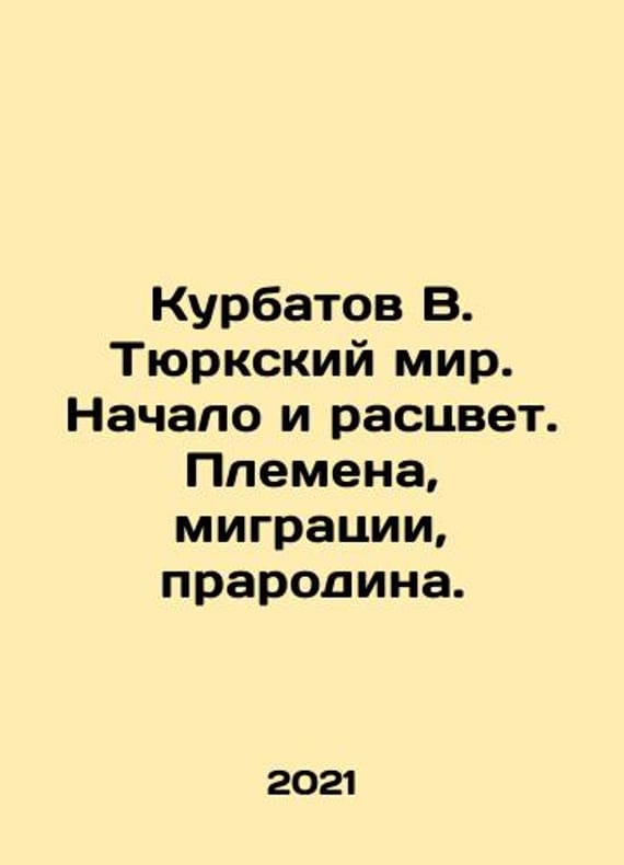 Kurbatov V. The Turkic world. Beginning and flourishing. Tribes, migration, ancestral homeland. In Russian /Kurbatov V. Tyurkskiy mir. Nachalo i rastsvet. Plemena, migratsii, prarodina. M. Justice 2021 516 p.We have thousands of titles and often several copies of each title may be available. Please feel free to contact us for a detailed description of the copies available.SKUalb1e16052934ac776d.