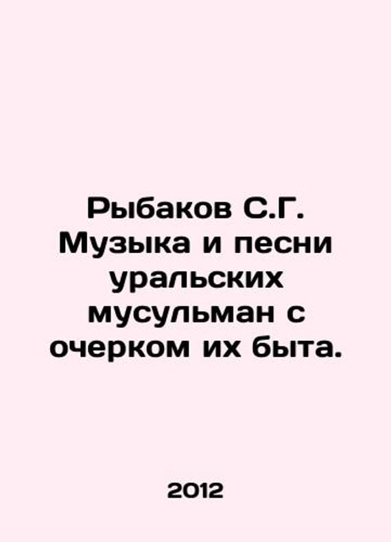Rybakov S.G. Music and songs by Ural Muslims with an outline of their everyday life. In Russian /Rybakov S.G. Muzyka i pesni uralskikh musulman s ocherkom ikh byta. Ufa Kitap 2012. 264s.We have thousands of titles and often several copies of each title may be available. Please feel free to contact us for a detailed description of the copies available.SKUalb1f44cbf2292fc3c5.