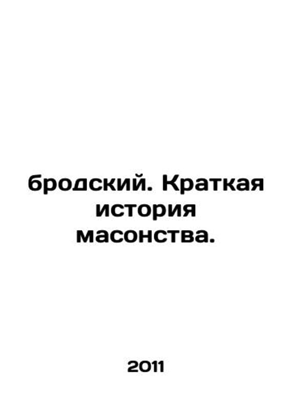 Brodsky. A Brief History of Freemasonry. In Russian /brodskiy. Kratkaya istoriya masonstva. The author examines the main theories of the origin of Freemasonry, their aesthetics, which have found expression in art and architecture, details the meaning of symbolism used by Brotherhood members, and presents a very complex hierarchy of members of secret societies, the structure of which is based on the principle of freedom.We have thousands of titles and often several copies of each title may be available. Please feel free to contact us for a detailed description of the copies available.SKUalb1f5c063e49464f99.