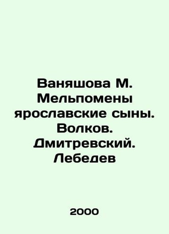 Vanyashova M. Melpomenys sons of Yaroslavl. Volkov. Dmitrevsky. Lebedev In Russian /Vanyashova M. Melpomeny yaroslavskie syny. Volkov. Dmitrevskiy. Lebedev Yaroslavl Alexander Rutman 2000. We have thousands of titles and often several copies of each title may be available. Please feel free to contact us for a detailed description of the copies available. SKUalb1f6154e2fe5377d8.