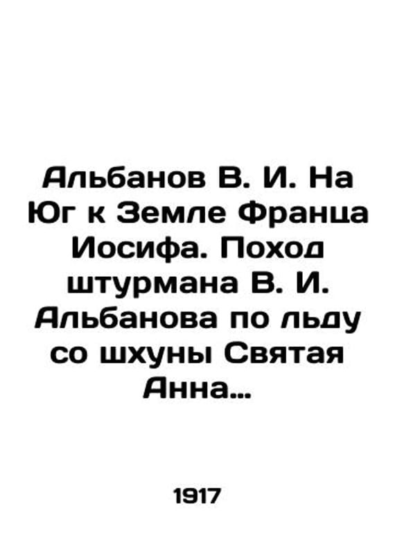Albanov V. I. To the South to Franz Josephs Land. The navigator V.I. Albanovs trek on the ice from the schooner St. Anna of Lieutenant G. L. Brusilovs expedition In Russian (ask us if in doubt)/Albanov V. I. Na Yug k Zemle Frantsa Iosifa. Pokhod shturmana V. I. Albanova po ldu so shkhuny Svyataya Anna ekspeditsii leytenanta G. L. Brusilova Short description: In Russian (ask us if in doubt).An Essay on Lieutenant G. L. Brusilovs Expedition compiled by L. L. Breitfus. With Figures in the Text and a First Map. Appendix to Volume 41 Hydrographic Notes: General Hydrographic Directorate 1917 194s. We have thousands of titles and often several copies of each title may be available. Please feel free to contact us for a detailed description of the copies available. SKUalb1f672d9402ca9933