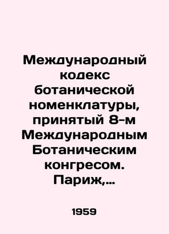 International Code of Botanical Nomenclature adopted by the 8th International Botanical Congress. Paris, July 1954 In Russian /Mezhdunarodnyy kodeks botanicheskoy nomenklatury, prinyatyy 8-m Mezhdunarodnym Botanicheskim kongresom. Parizh, iyul 1954 g.M.-L. Science. 1959.We have thousands of titles and often several copies of each title may be available. Please feel free to contact us for a detailed description of the copies available. SKUalb2102a2686c03b782.