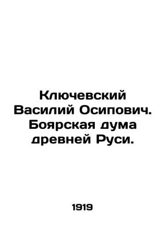 Klyubov Vasily Osipovich. Boyarskaya Duma of ancient Russia. In Russian /Klyuchevskiy Vasiliy Osipovich. Boyarskaya duma drevney Rusi. Pb. Literary and Publication Department of the Peoples Commissariat for Enlightenment, 1919, 5th Edition. We have thousands of titles and often several copies of each title may be available. Please feel free to contact us for a detailed description of the copies available. SKUalb216f7822e05d6b31.