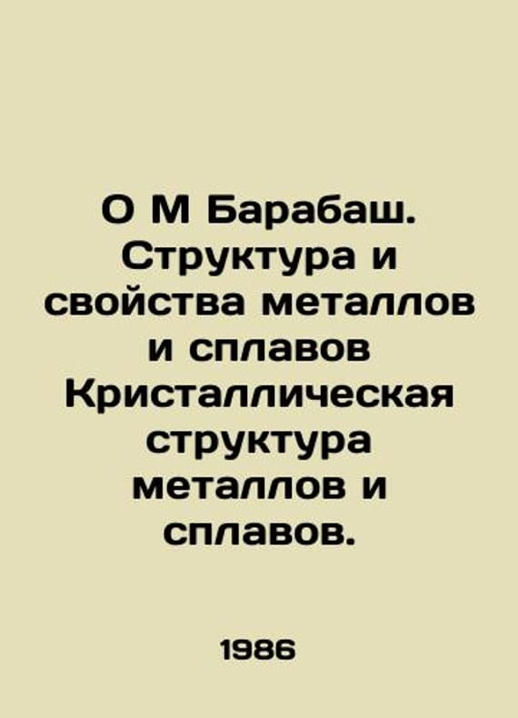 O M Barabash. Structure and properties of metals and alloys The crystalline structure of metals and alloys. In Russian /O M Barabash. Struktura i svoystva metallov i splavov Kristallicheskaya struktura metallov i splavov. O M Barabash. Structure and properties of metals and alloys The crystalline structure of metals and alloys. 1986.We have thousands of titles and often several copies of each title may be available. Please feel free to contact us for a detailed description of the copies available.SKUalb218f60847e5de6a5.