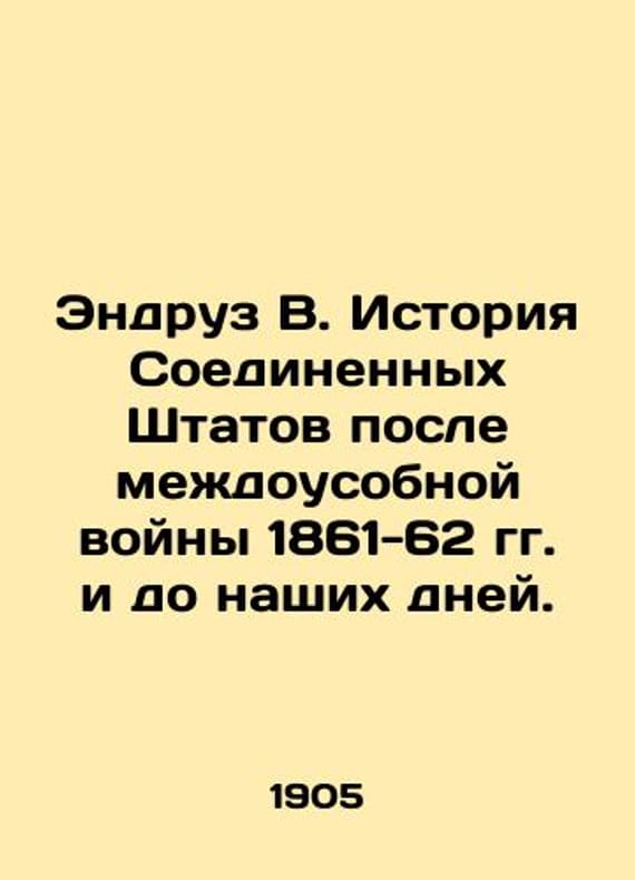 Endruz W. History of the United States from the internecine war of 1861-62 to the present. In Russian /Endruz V. Istoriya Soedinennykh Shtatov posle mezhdousobnoy voyny 1861-62 gg. i do nashikh dney. St. Petersburg: Type-Lite Herold, 1905. 580 p. 1905. We have thousands of titles and often several copies of each title may be available. Please feel free to contact us for a detailed description of the copies available. SKUalb21f5878064befbc5.