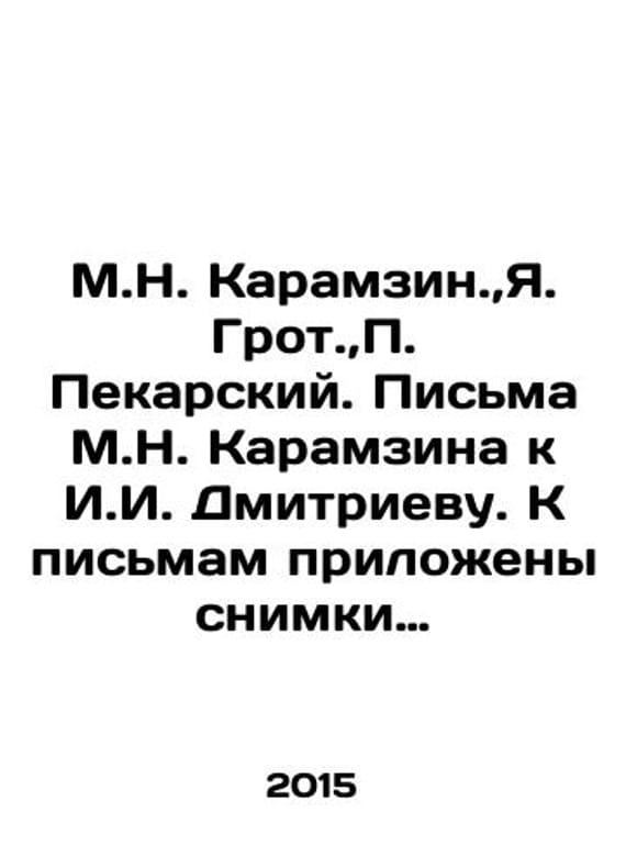 M.N. Karamzin., Ya. Grot., P. Pekarsky. Letters from M.N. Karamzin to I.I. Dmitriev. Attached to the letters are pictures of his handwriting and a portrait of Karamzin In Russian /M.N. Karamzin., Ya. Grot., P. Pekarskiy. Pisma M.N. Karamzina k I.I. Dmitrievu. K pismam prilozheny snimki pocherka i portret Karamzina. Ko dnyu stoletney godovshchiny so dnya rozhdeniya N.M. Karamzina. By order of the Department of Russian Language and Verbal Language of the Imperial Academy of Sciences, Ya. Groth and P. Pekarsky have published, with notes and an index, a book on demand.We have thousands of titles and often several copies of each title may be available. Please feel free to contact us for a detailed description of the copies available.SKUalb2203da554d5c4f3e.