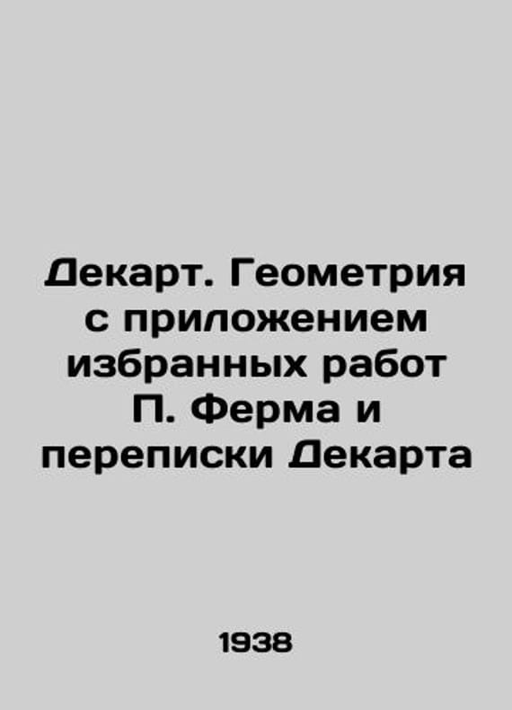 Descartes R. Geometry. With the attachment of selected works by P. Farm and Descartes Census In Russian /Dekart R. Geometriya. S prilozheniem izbrannykh rabot P.Ferma i perepisi Dekarta In Russian. Classics of Natural Science M-L ONTI NKTP. Main Edition of Technical and Theoretical Literature 1938. 296c. We have thousands of titles and often several copies of each title may be available. Please feel free to contact us for a detailed description of the copies available. SKUalb89ea730b39af5f16