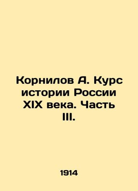 Kornilov A. Course in the History of 19th Century Russia. Part III. In Russian /Kornilov A. Kurs istorii Rossii XIX veka. Chast III. M. and S. Sabashnikov Publishing House. 1914. 330 p.We have thousands of titles and often several copies of each title may be available. Please feel free to contact us for a detailed description of the copies available.SKUalb229d695362d776b5.