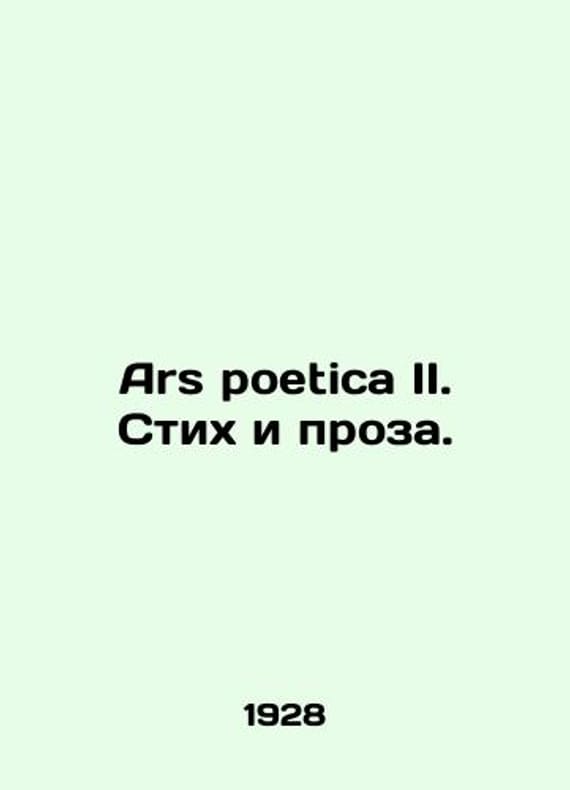 Ars poetry II. Verse and prose. In Russian /Ars poetica II. Stikh i proza. M. State Academy of Art Sciences. 1928. 212 p.We have thousands of titles and often several copies of each title may be available. Please feel free to contact us for a detailed description of the copies available.SKUalb22a45fccfd87a762.