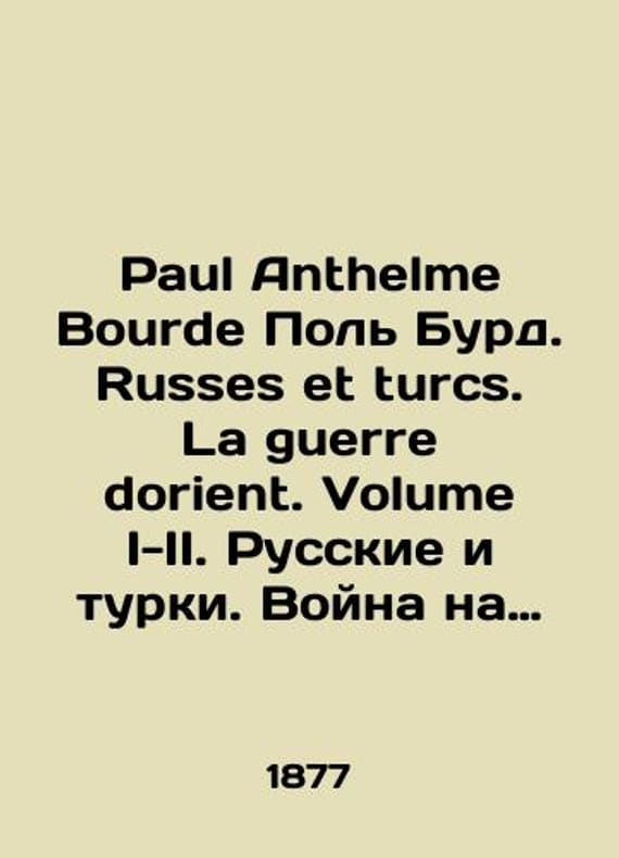 Paul Anthelme Bourde Paul Bourde. Russes et turcs. La guerre dorient. Volume I-II. Russians and Turks. War in the East. Volume I-II. In French (ask us if in doubt)/Paul Anthelme Bourde Pol Burd. Russes et turcs. La guerre dorient. Volume I-II. Russkie i turki. Voyna na vostoke. Tom I-II. Short description: In French (ask us if in doubt).Illustrations par les meilleurs artistes. Portraits combats batailles vues cartes etc. Illustrations of the best artists. Portraits battles battles maps etc. In French. Paris. Manceaux editeur-depot. Manco. 1877-1878 We have thousands of titles and often several copies of each title may be available. Please feel free to contact us for a detailed description of the copies available. SKUalb2321fd8f3868138f