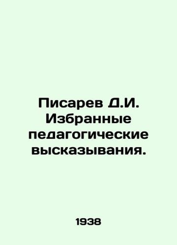 D.I. Pisarev Selected pedagogical statements. In Russian /Pisarev D.I. Izbrannye pedagogicheskie vyskazyvaniya. Series: Educational Library. M. Uchpedgiz 1938. We have thousands of titles and often several copies of each title may be available. Please feel free to contact us for a detailed description of the copies available. The delivery of this book might be delayed beyond the usual timeframe due to extended processing and preparation before shipment, and faster shipping opSKUalb232fad52209a629f