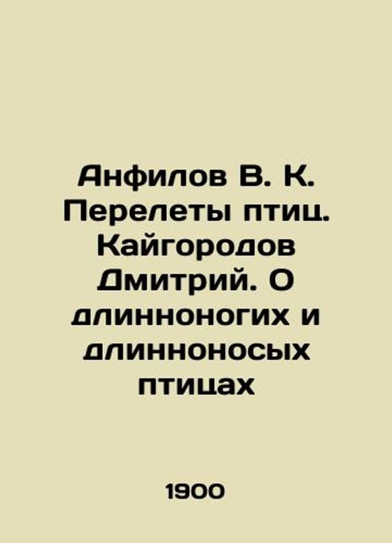 Anfilov V.K. Birds Migration. Kaigorod Dmitry. About Long-legged and Long-Nosed Birds In Russian /Anfilov V. K. Perelety ptits. Kaygorodov Dmitriy. O dlinnonogikh i dlinnonosykh ptitsakh Dmitry Kaigorodov. On the long-legged and long-nosed birds of Petrograd, St. Petersburg Type P. P. Soikin, edition A. S. Suvorin 1916, 1900, 32 p.We have thousands of titles and often several copies of each title may be available. Please feel free to contact us for a detailed description of the copies available.SKUalb23469a06bbb4cf63.