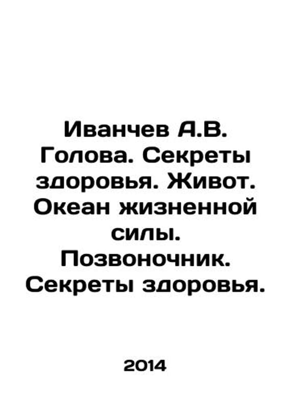 Ivanchev A.V. Head. Secrets of health. Belly. Ocean of vitality. Spina bifida. Secrets of health. In Russian /Ivanchev A.V. Golova. Sekrety zdorovya. Zhivot. Okean zhiznennoy sily. Pozvonochnik. Sekrety zdorovya. Series: The Triad of Health. Rostov-on-Don. Phoenix. 2014. We have thousands of titles and often several copies of each title may be available. Please feel free to contact us for a detailed description of the copies available. SKUalb23876edc01b0872a.